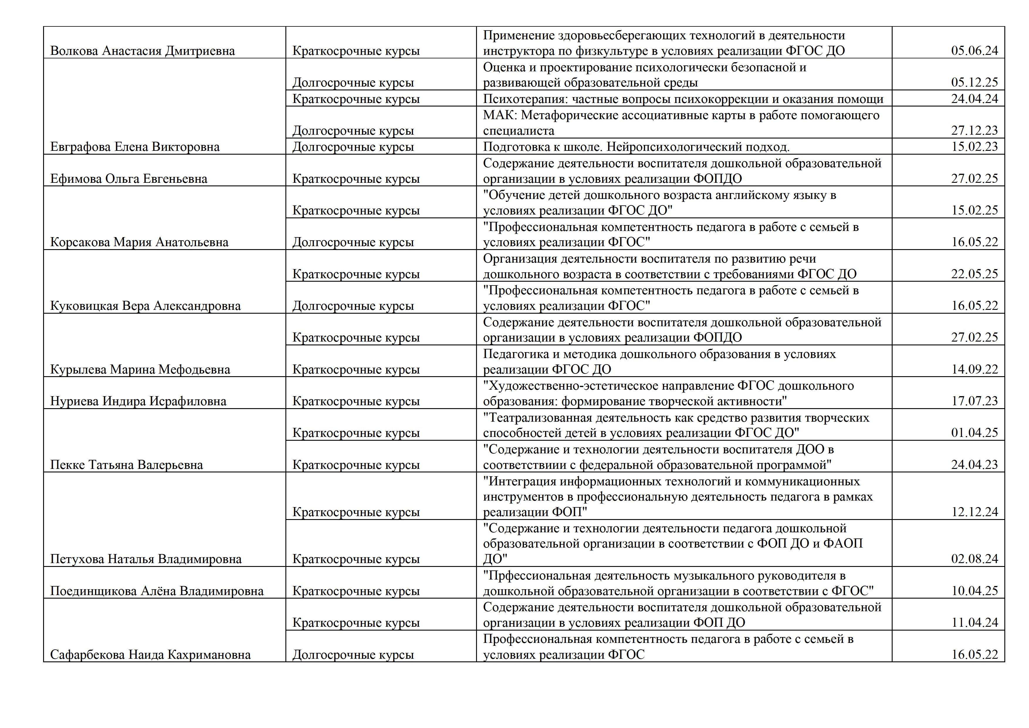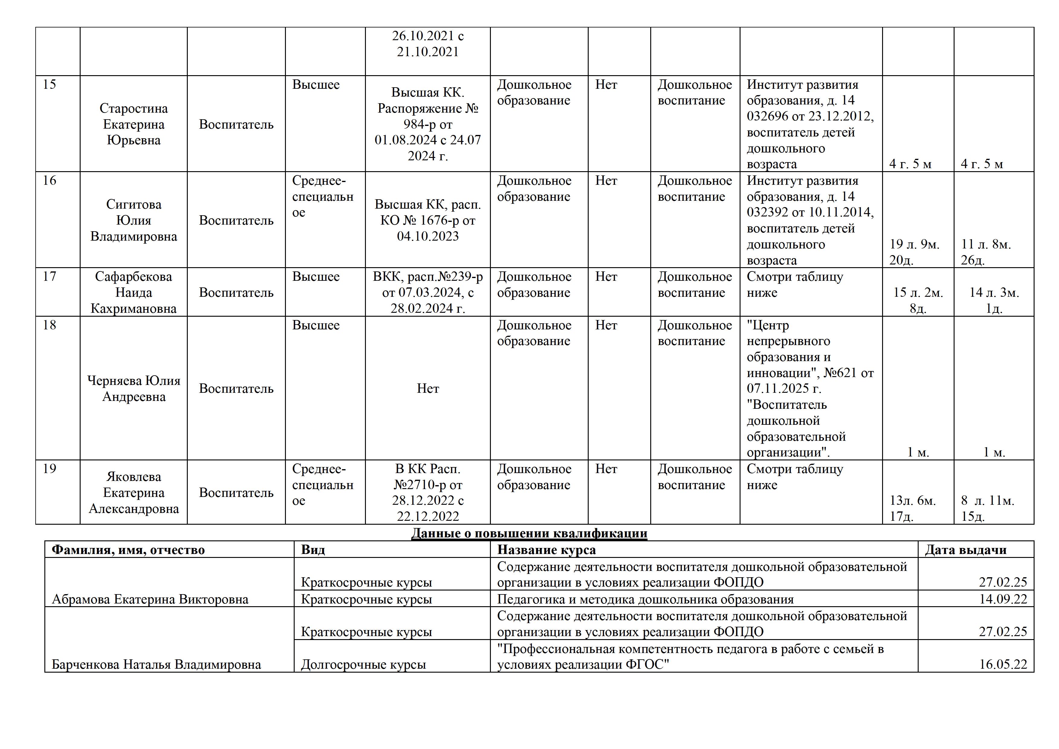 - В 2017 году на базе ООО Учебный центр «Профессионал» прошла профессиональную переподготовку по программе «Воспитание детей дошкольного возраста». Квалификация: Воспитатель детей дошкольного возраста